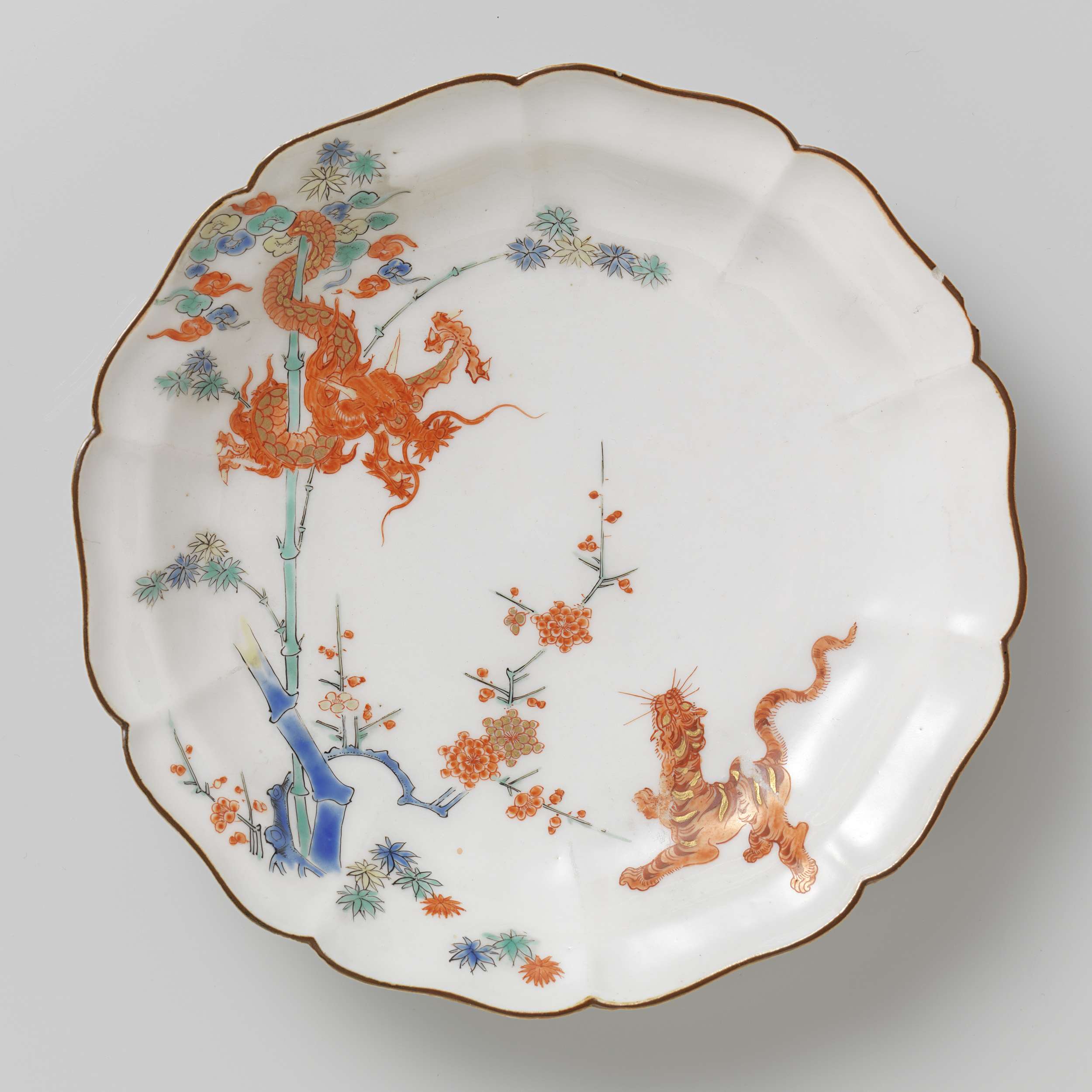 | Nederlands | Lobed dish with dragon, tiger, bamboo and prunus |