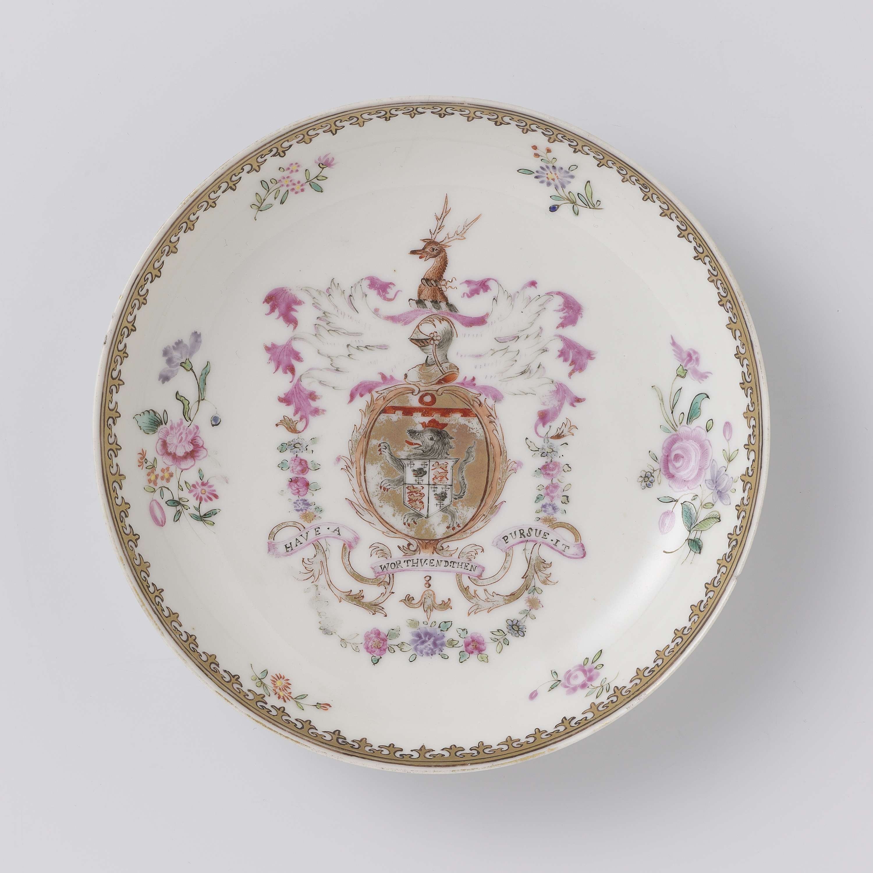 Schotel met het wapen van admiraal John Amyas van Hingham, Norfolk en losse bloemtakken||http://hdl.handle.net/10934/RM0001.COLLECT.3961
