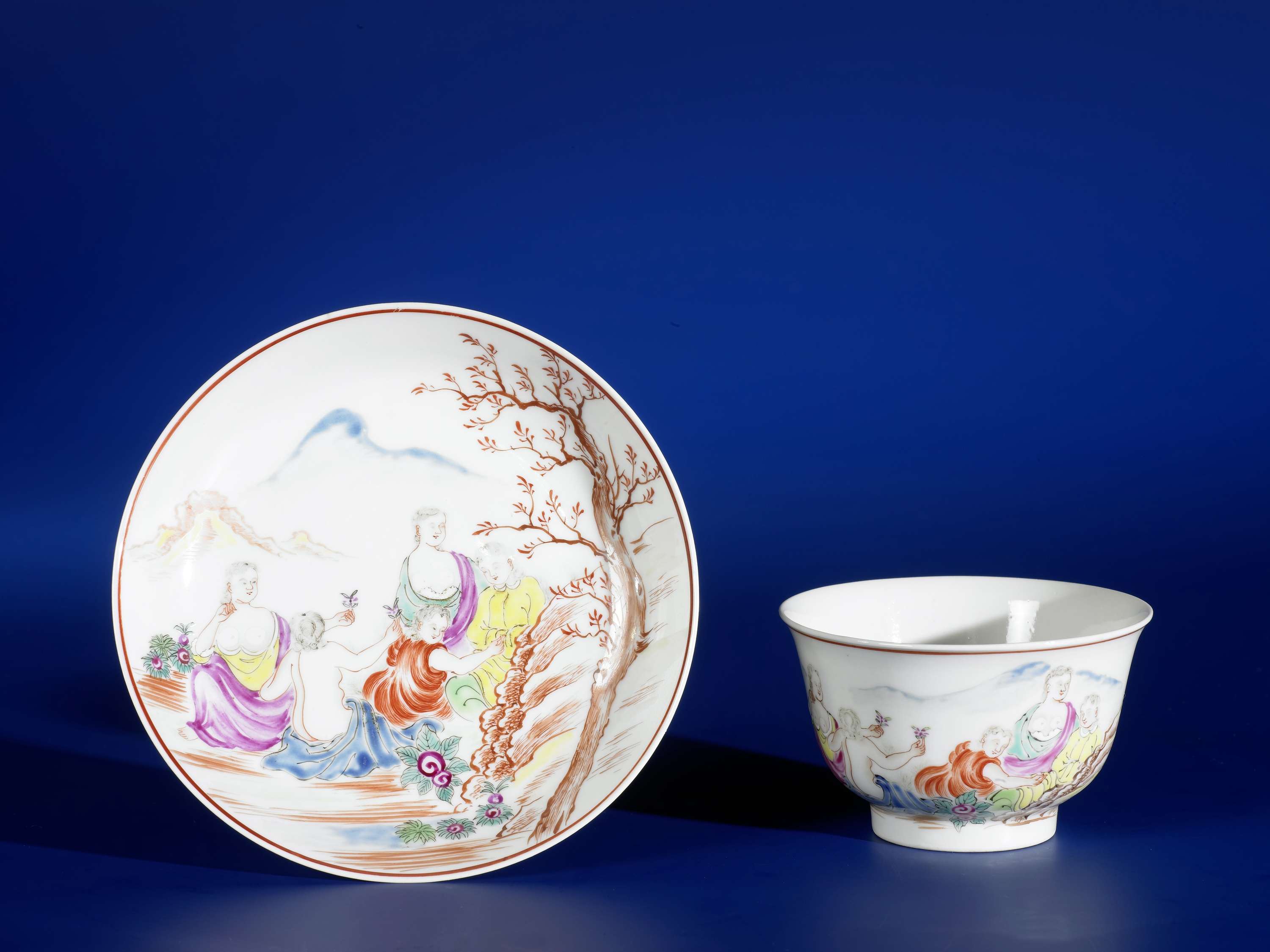 Klokvormige kop en schotel met Europese personen in een landschap||http://hdl.handle.net/10934/RM0001.COLLECT.3258 |