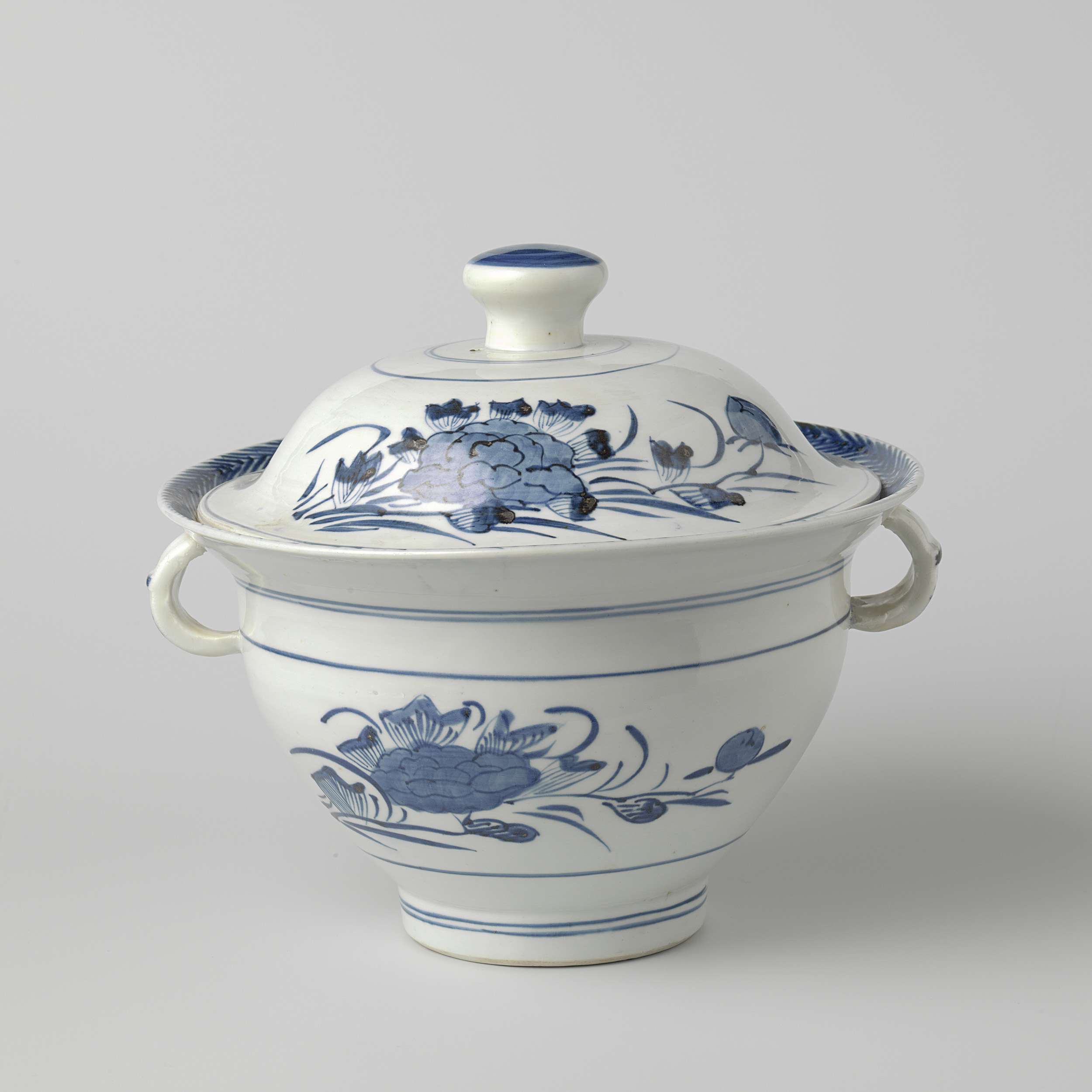 Ronde deksel van terrine met pioentakken||http://hdl.handle.net/10934/RM0001.COLLECT.24690