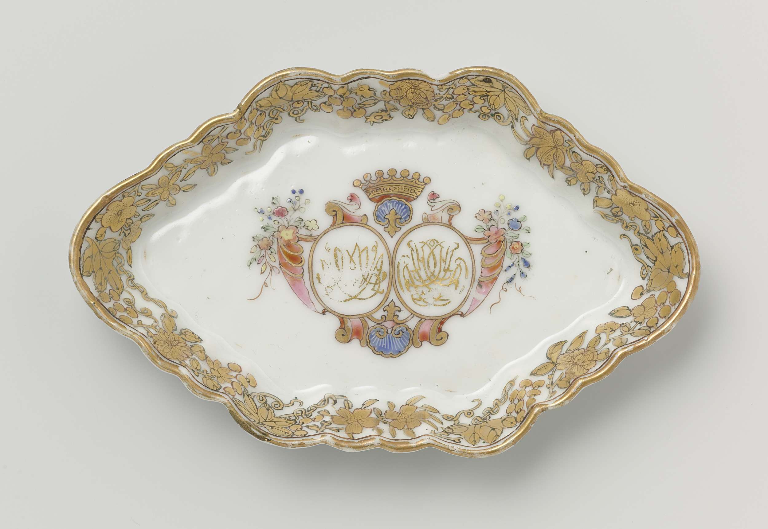 Pattipan from the 'Swellengrebel service' with a double crowned monogram and a border with floral scrolls (Engels)