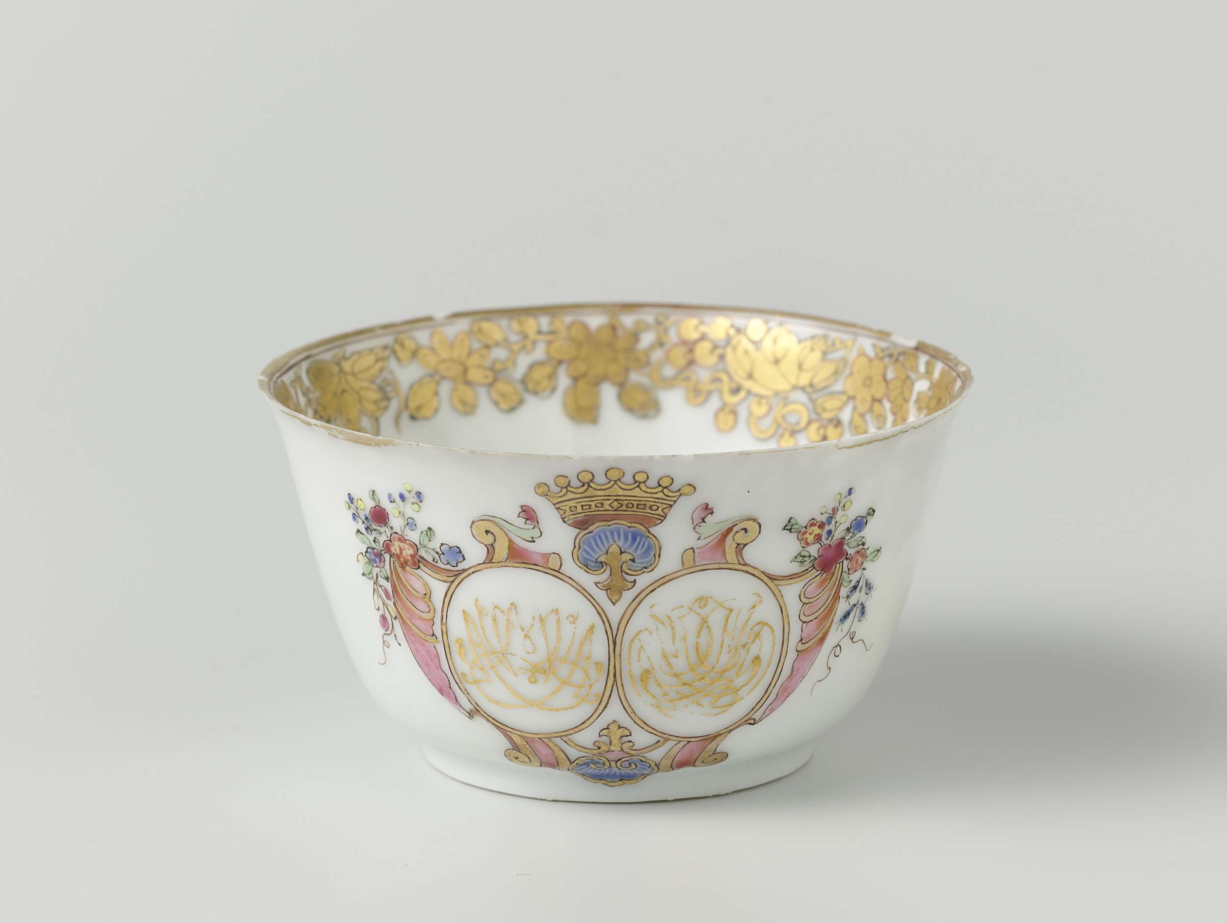Bell-shaped cup from the 'Swellengrebel service' with a double crowned monogram and a border with floral scrolls (Engels)