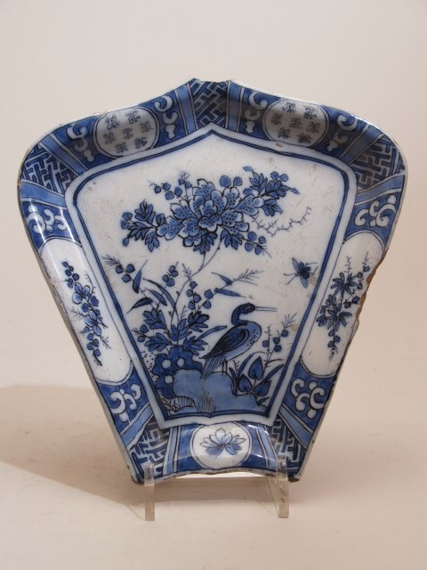 Schaaltje van een confiturenset in blauw-wit gedecoreerd met een op kraakporselein geïnspireerd chinoiseriedecor. (Q14282)