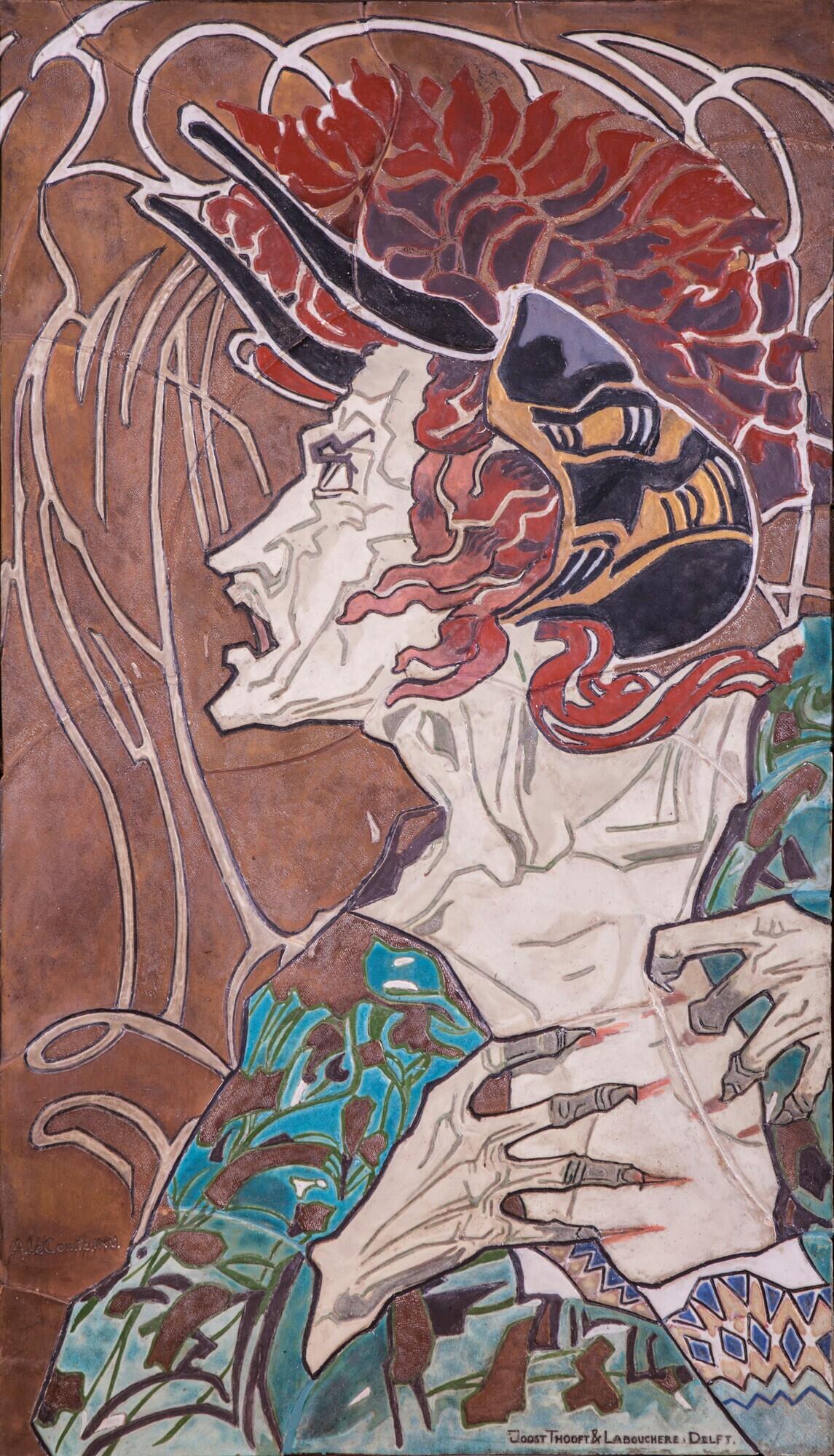 Sectieltableau 'Afgunst'||Delft||1902||pâte-sur-pâte, porselein, sectieltechniek||PDA 210