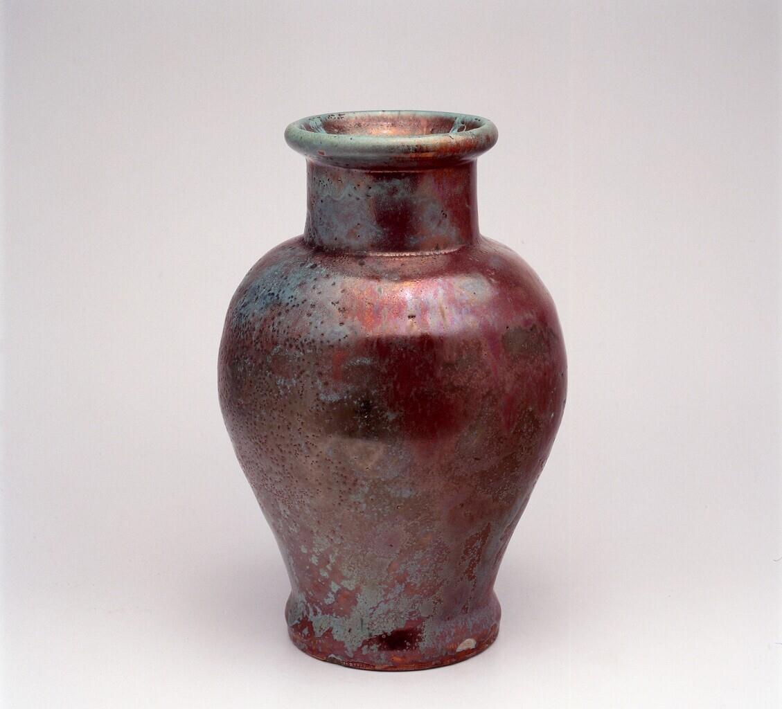 Vaas met rechte brede hals met dikke uitstulpende ring. Vaas naar beneden toe versmallend. Aan de onderzijde staat gegrifd 'afgekeurd'. (Nederlands)