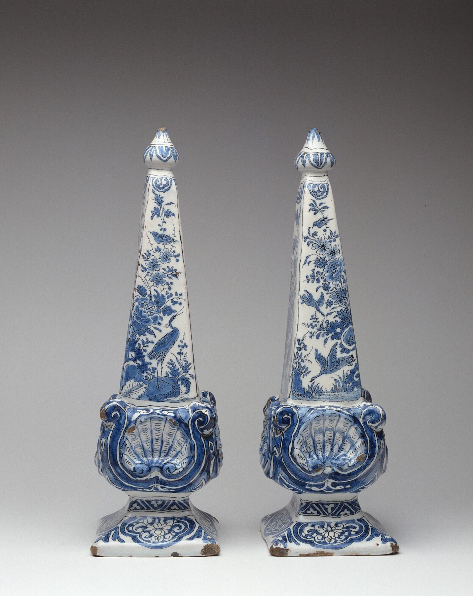Twee Delftse faience obelisken. (Q15021)