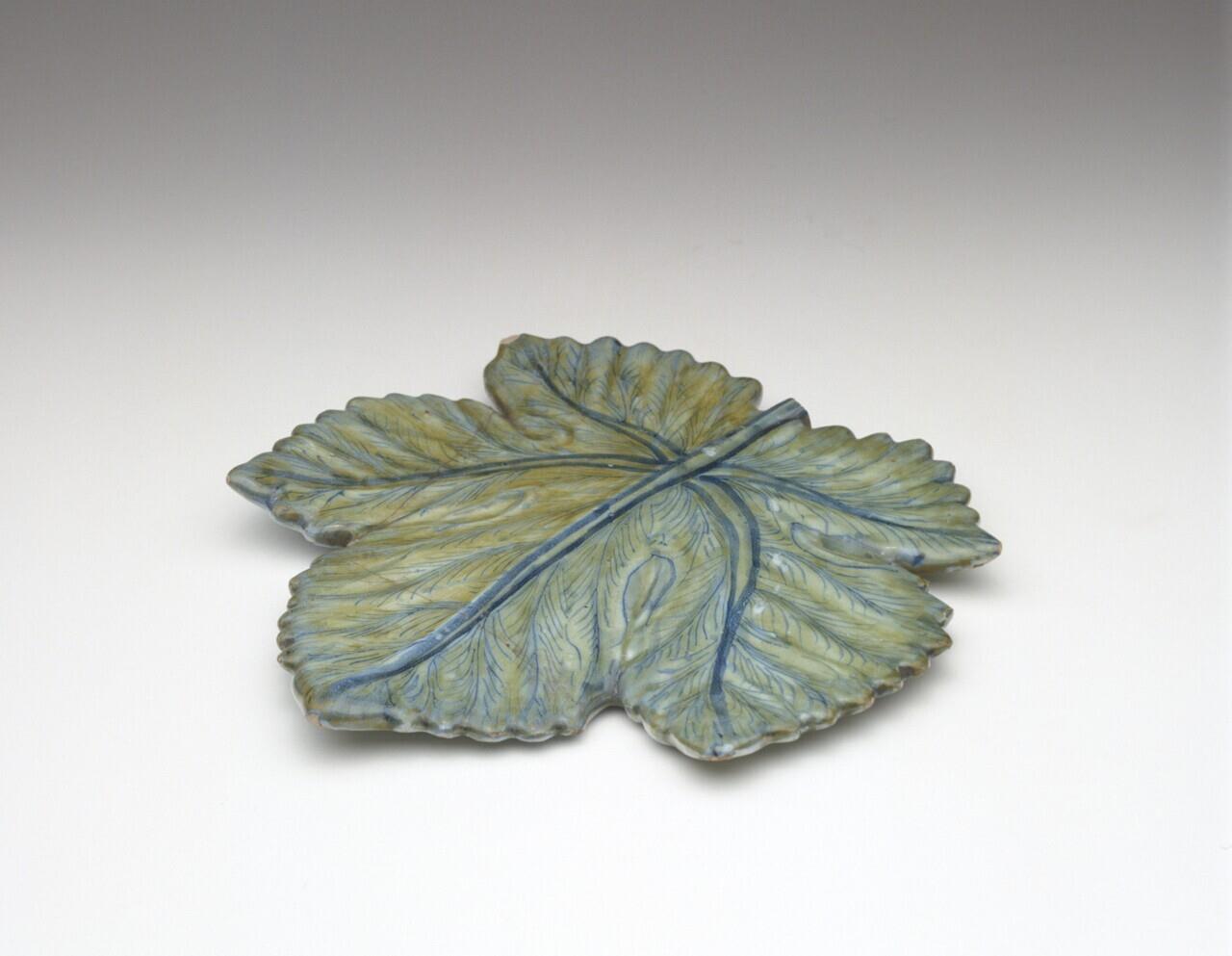 Schotel in de vorm van een blad||Delft||ca. 1750 - 1775||tinglazuuraardewerk||LM 89