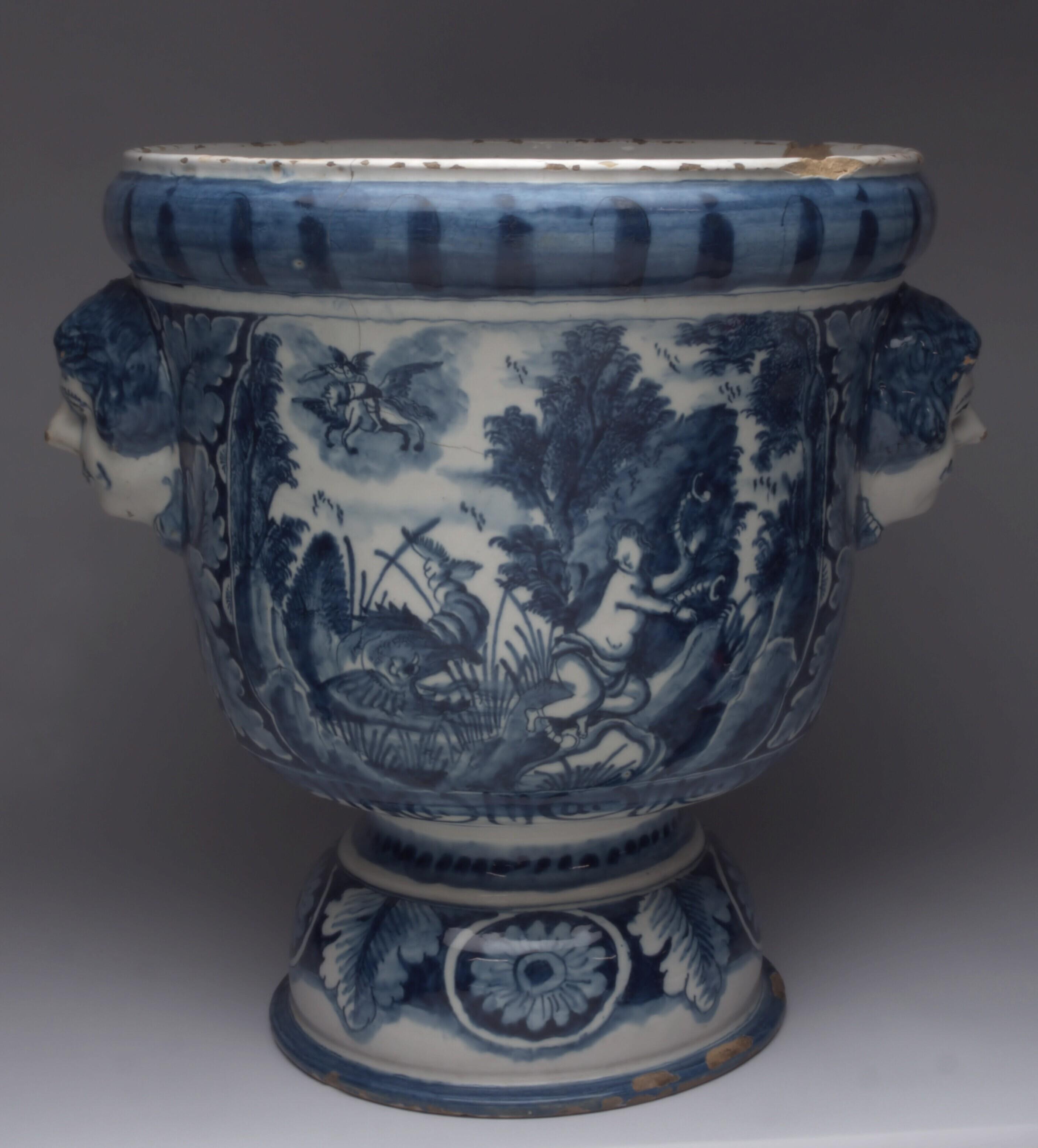 De urnvormige vaas is geplaatst op een bolle voet die is beschilderd met rozetten alternerend met eikenbladeren. Aan de voorkant van de vaas is Andromeda afgebeeld geketend aan een rots terwijl zij wordt belaagd door een visachtig monster. Linksboven in de lucht komt Perseus aangevlogen op zijn gevleugelde paard. De voorstelling op de achterkant bestaat uit waterspuwende putti in verschillende houdingen. Aan weerskanten van de vaas zijn handgrepen in de vorm van maskarons omgeven door eikenbladeren. (Nederlands)