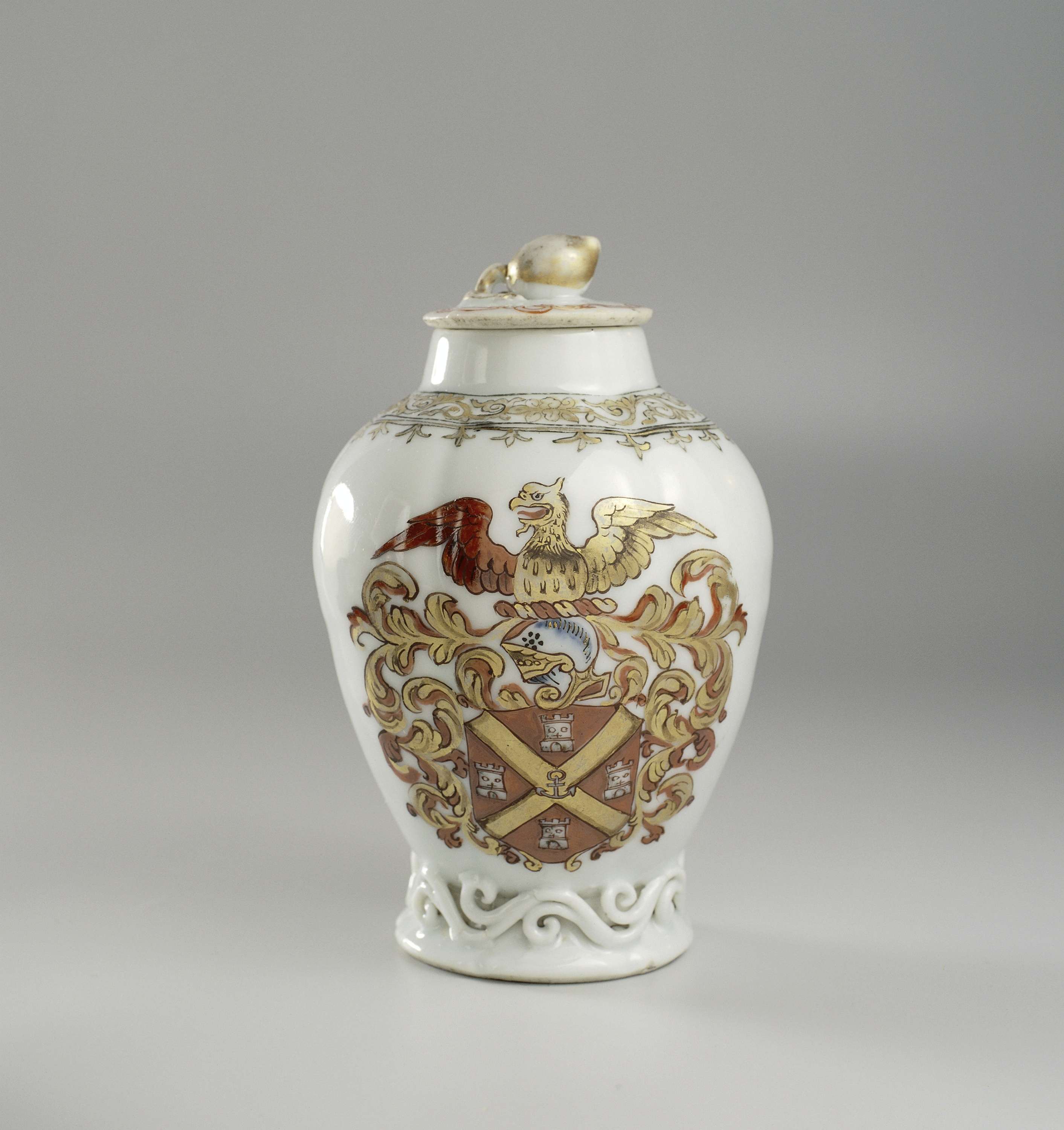 Ovoid tea caddy with the arms of the De Neufville family (Engels)