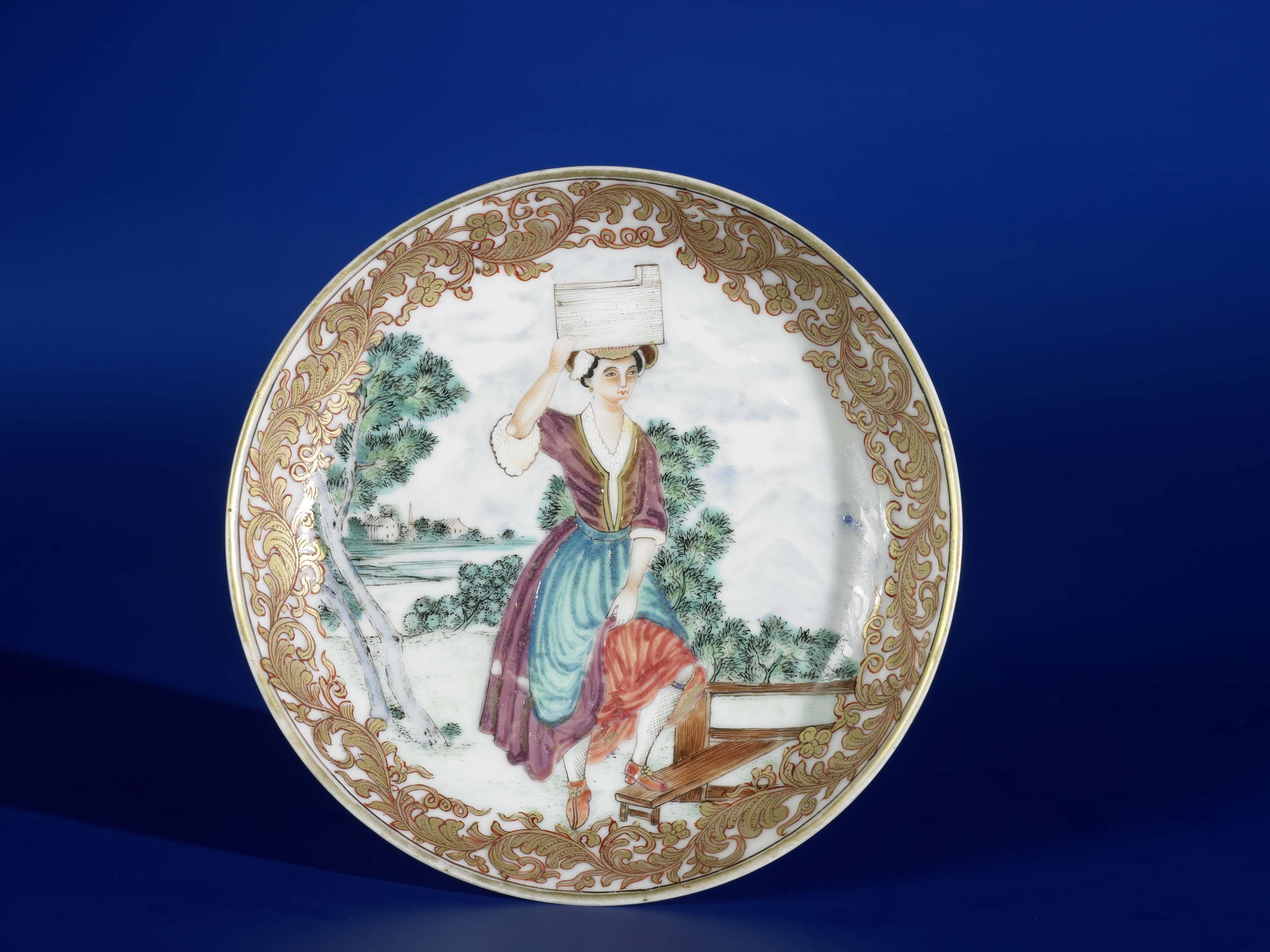 Saucer with an image of a young girl with a bucket on her head (Engels)