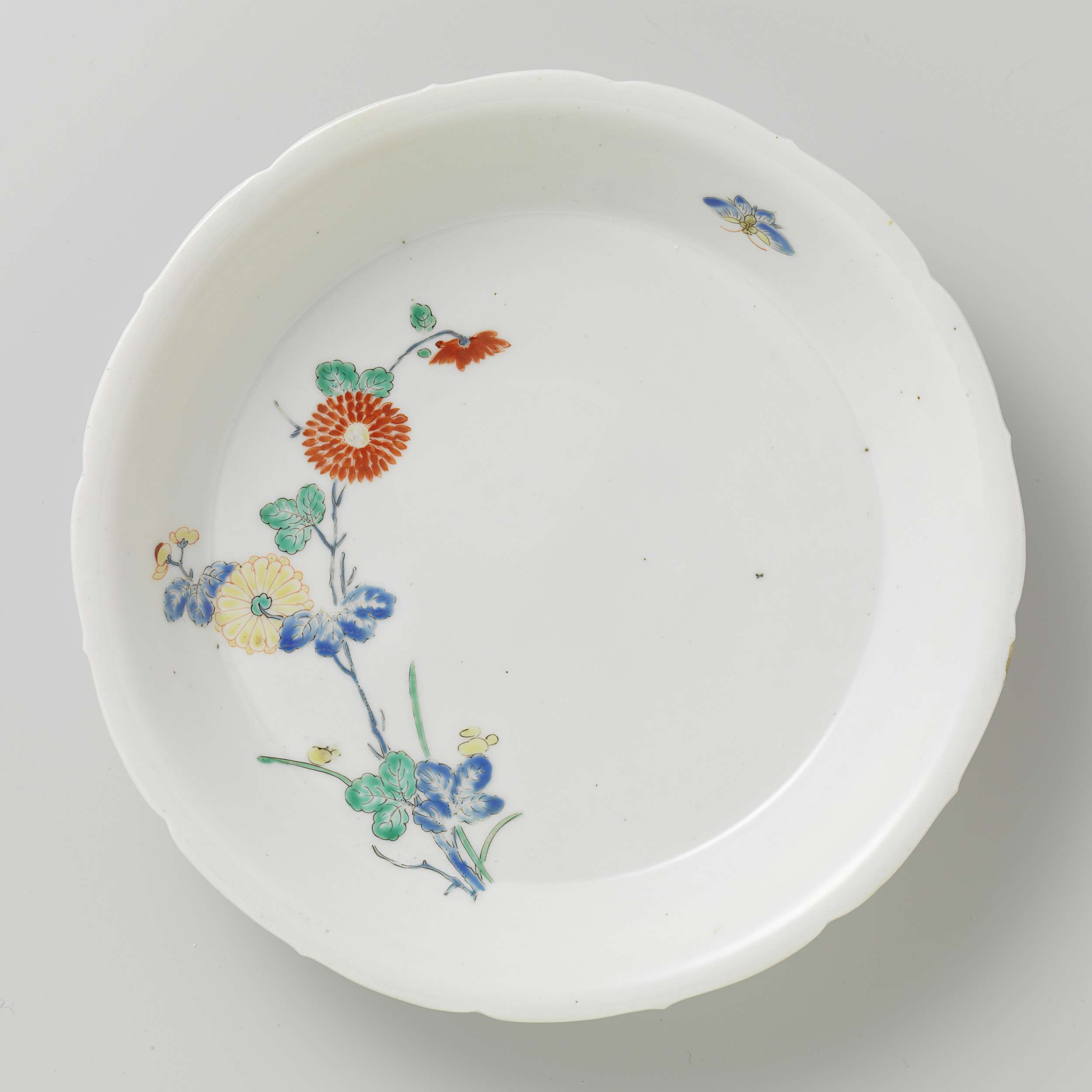 Scalloped dish with chrysanthemum and butterfly (Engels)
