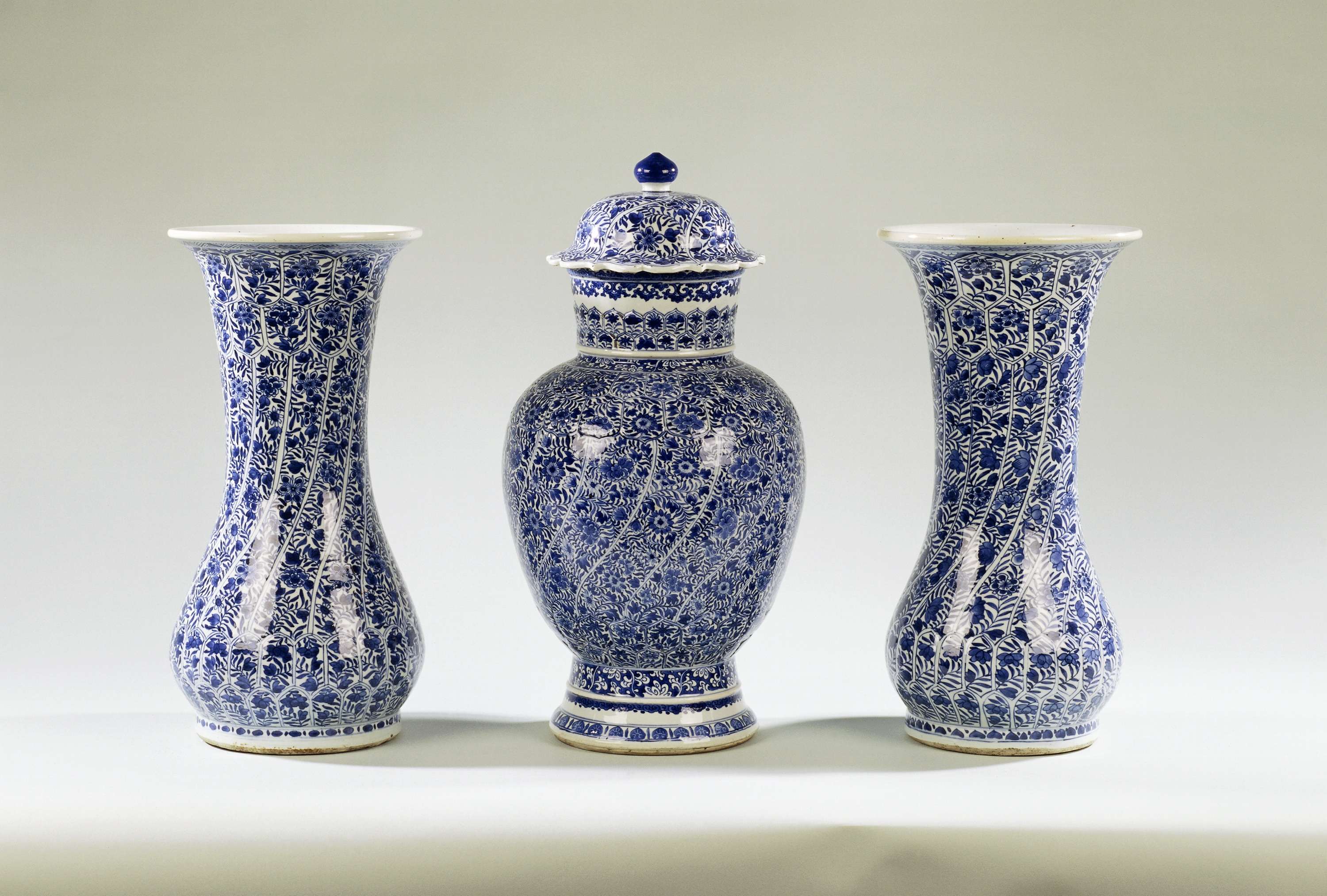 Peervormige bekervaas met getordeerde banden met bloemtakken (Q19965)