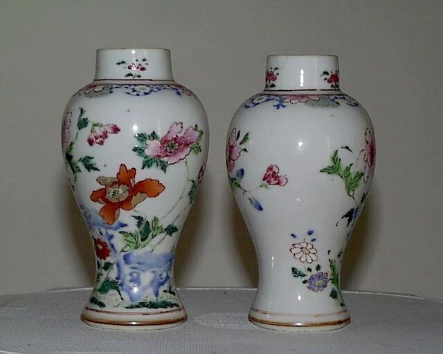 porselein, decoratie in famille rose-techniek (wit, blauw, groen, roze, paars en zwart), bovenglazuur (ijzerrood en goud), kapucijner voetrand (Nederlands)