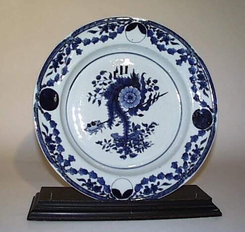 Porselein met decor van bloemen (in navolging van Europese classicistische versiering uit de tweede helft van de achttiende eeuw, nl. festoenen en medaillons etc.) in blauw onderglazuur. (Nederlands)