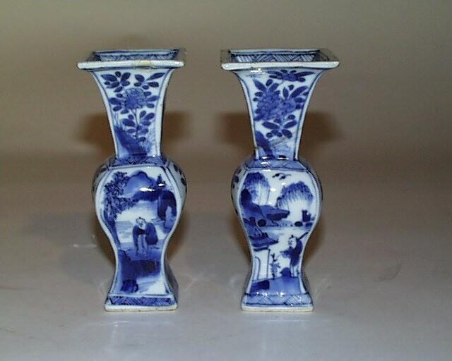 Het vierkante vaasje heeft een insnoering boven de voet en de schouder, en een zich naar boven toe verwijdende hals met vierkante monding. Dergelijk vaasjes, maar dan rond, worden wel aangeduid als yenyen-vaasjes (zie R 2440). De buik heeft aan weerszijden een decor van een rots met een bloeiende chrysant (met een insect). Op de andere zijden bevindt zich een rivierlandschap met bergen, rotsen, een boom en een oude man, respectievelijk een rivierlandschap met rotsen, treurwilgen, vliegende vogels, een huis en een man met een voorwerp over de schouder. De hals heeft aan weerszijden een decor van een rots met een bloeiende chrysant (met een insect). Op de andere zijden bevindt zich een rivierlandschap met bergen, rotsen, een treurwilg en vliegende vogels, respectievelijk een rivierlandschap met rotsen, bomen, vliegende vogels en een huis. Boven de standring, op de schouder en op de binnenrand lopen banden met driehoekig servetwerk met alternerende arcering. (Nederlands)