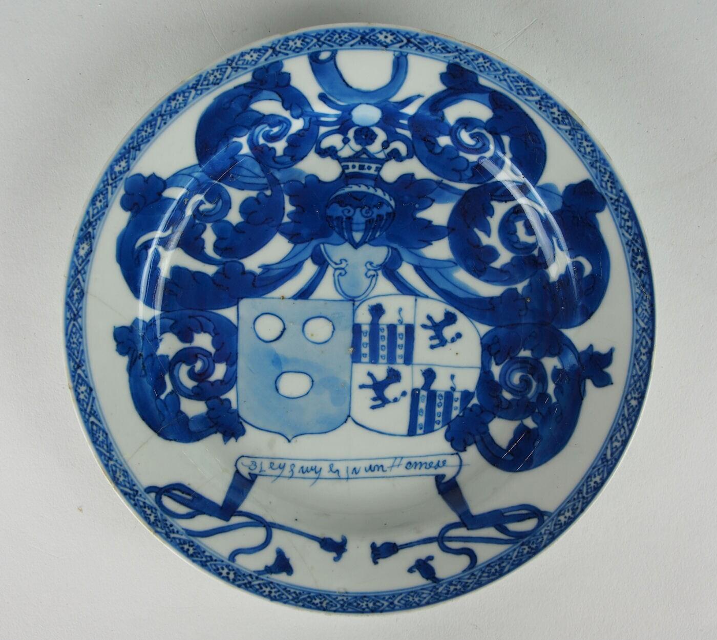 Bord met alliantiewapen van Van Bleijswijk en Van Hemert||China||1708 - 1710||porselein, glazuur||LM 565