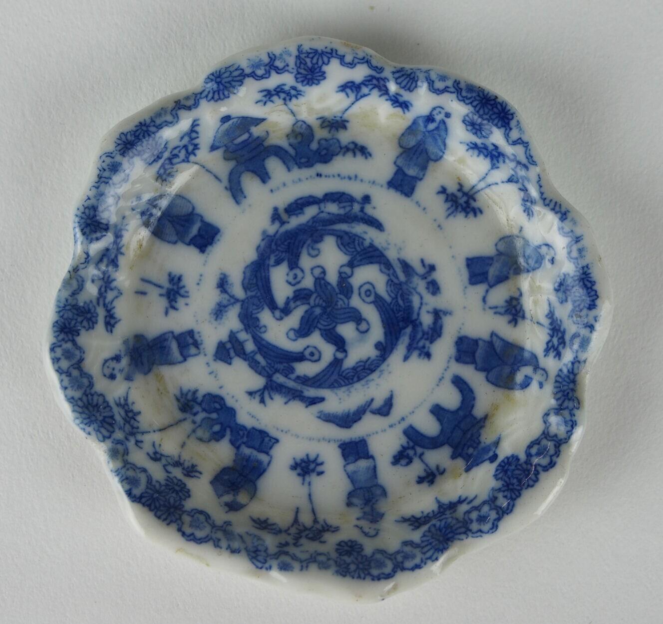 schaal met radiaal decor van figuren en huizen. (Nederlands)