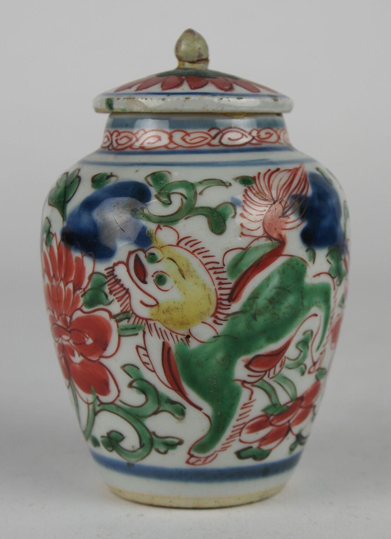 porselein, Wucai?-techniek (geel, blauw, groen, ijzerrood en zwart), ongeglazuurde bodem (Nederlands)