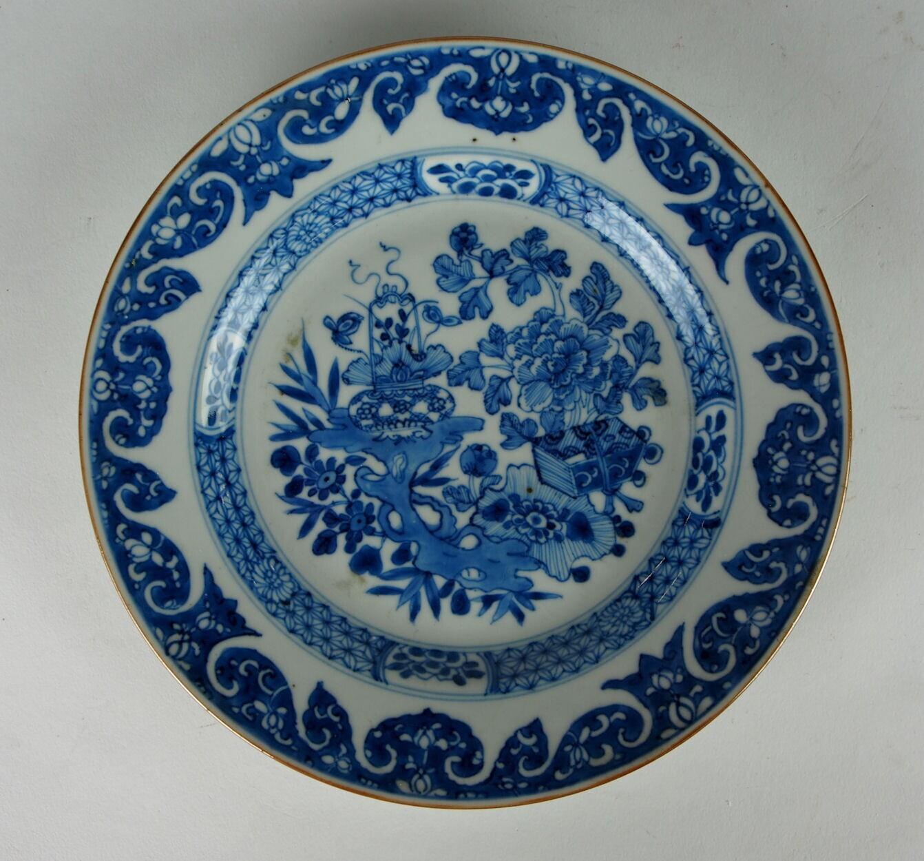 porselein ; decoratie in onderglazuur (blauw) ; kapucijner rand (Nederlands)