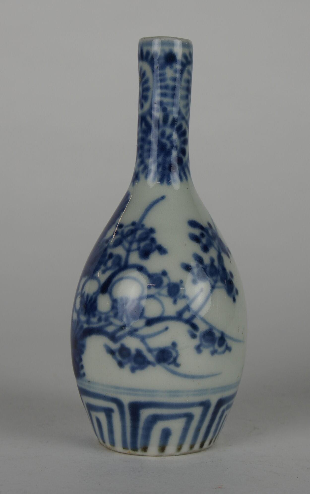 De vaasjes zijn druppelvormig en hebben een verzonken bodem. De voet heeft, onder een dubbele cirkel, een decor van vierkante, gestileerde bloembladeren. De buik heeft een decor van pijnboom, prunus en bamboe, de zogenoemde 'drie vrienden van de winter'. De hals heeft een decor van spiralend rankwerk. (Nederlands)