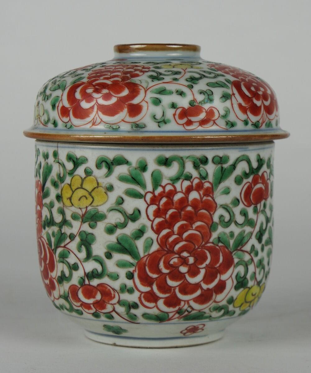 porselein ; famille verte-techniek (geel, blauw, groen, rood en zwart) ; kapucijner randen (Nederlands)