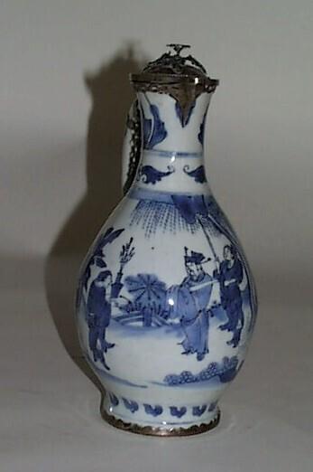 Een Chinees porseleinen schenkkan met een Nederlands zilveren deksel. (Nederlands)