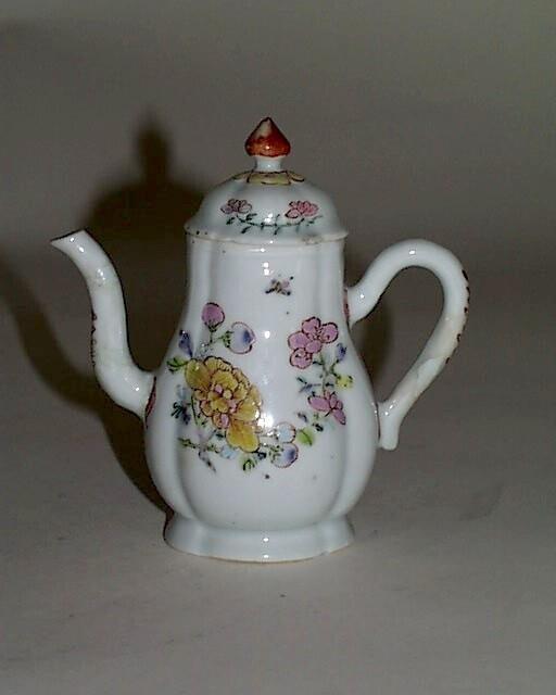 porselein ; decoratie in famille rose-techniek in geel, groen, blauw, roze, ijzerrood, lila en zwart (Nederlands)