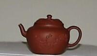 Theepot, met decor in reliëf van bloemtakjes en op deksel 4 afbeeldingen van voorwerpen. (Nederlands)
