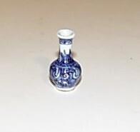 Het miniatuurvaasje is bolvormig, heeft een ringvormige voet, een lange rechte hals en een buitenwaarts gebogen monding. Om de hals loopt een band van gearceerd servetwerk, de schouder is gedecoreerd met gepunte bladeren en de buik heeft een decor van rankwerk. (Nederlands)