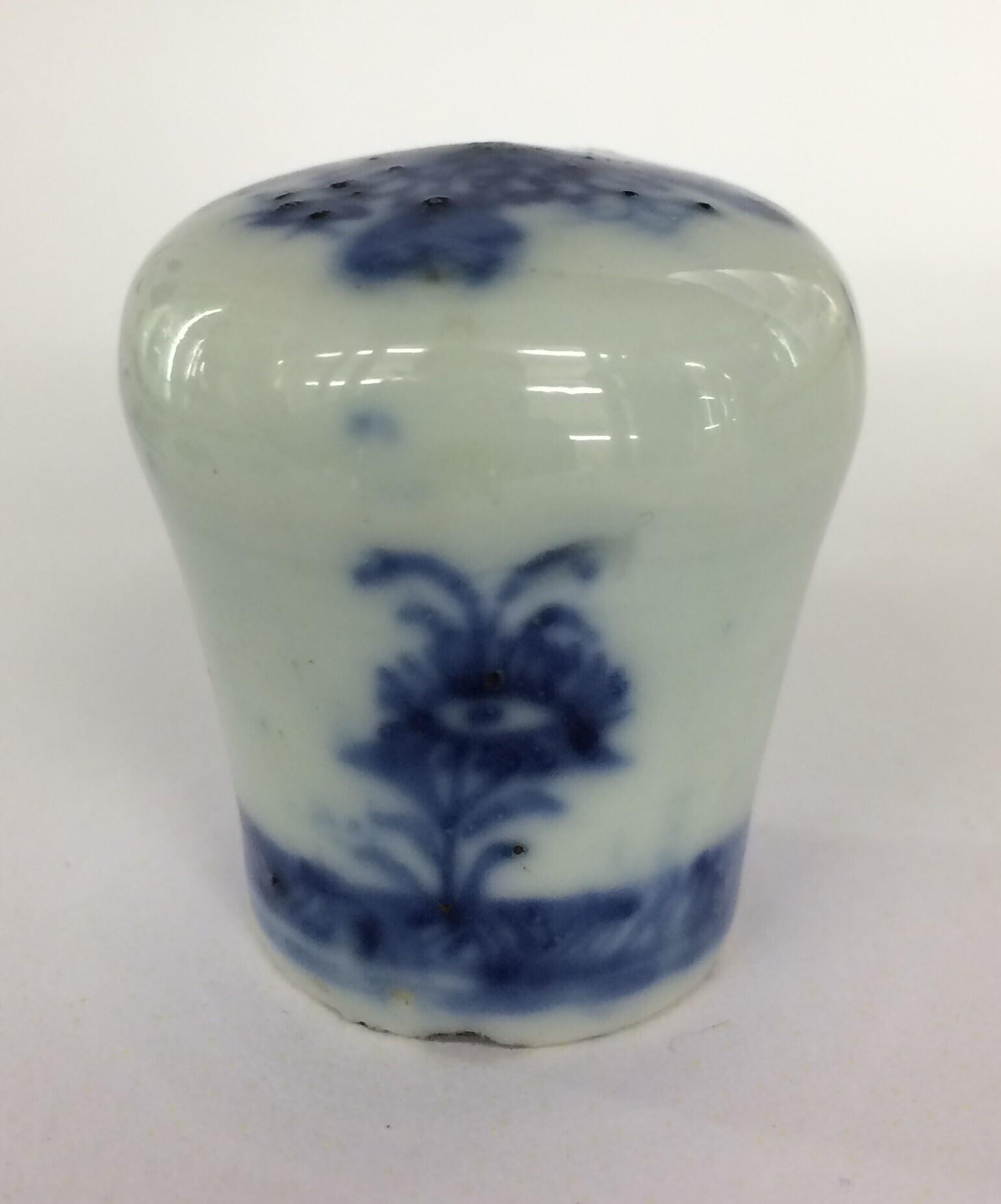 Wandelstokknop van Chinees porselein. Versierd in onderglazuur blauw met op de kop diverse bloemen. Op de zijkant ook een decor van bloemen. Aan de onderzijde een decoratieve rand (visgraat?). (Nederlands)