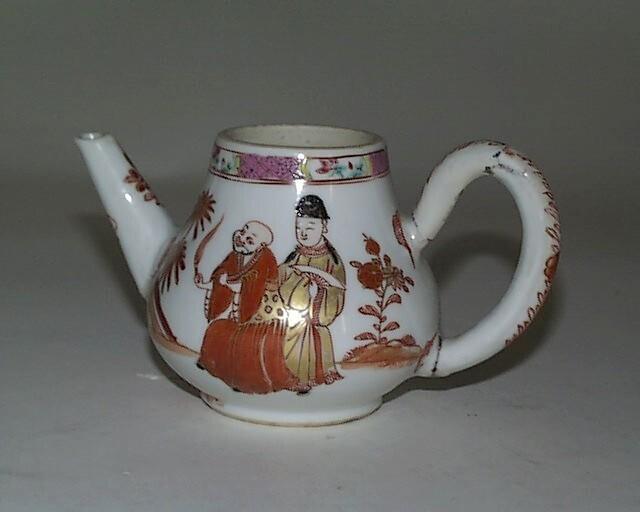 Figuraal en ornamentaal decor in kleurige emaillen, ijzerrood en goud opglazuur. (Nederlands)