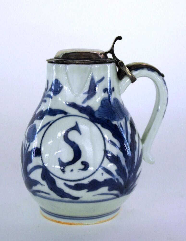 Het sojakannetje is buidelvormig en heeft een standring, een driehoekige sneb, een gegolfd oor, dat haaks op de sneb staat, en een zilveren klapdeksel. Het kannetje heeft aan beide zijden een decor van een 'S' met een komma binnen een cirkel omgeven door bloeiende planten en insecten. Het oor is gedecoreerd met een bloemenrank. (Nederlands)