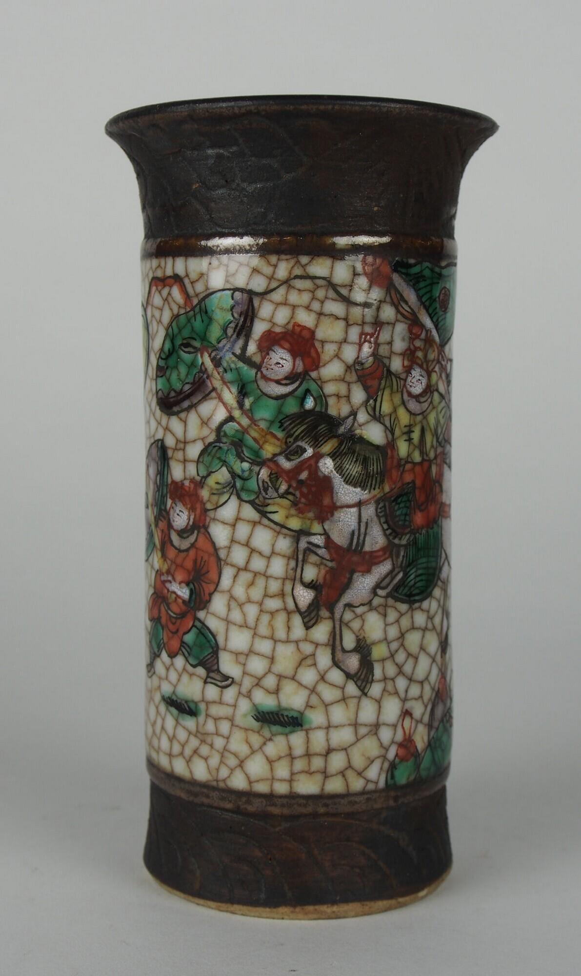 porselein glazuur (deels matbruin), emaillekleuren (wit, geel, groen, rood, magenta en zwart) (Nederlands)