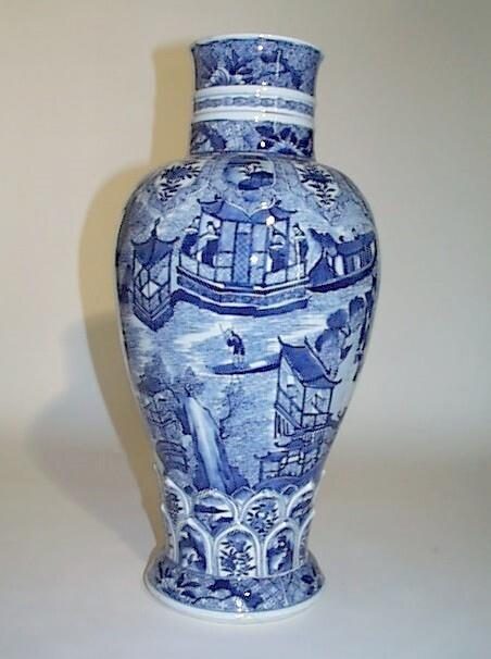 Balustervormige vaas met decor van een rivier met schepen, huizen en figuren. (Nederlands)