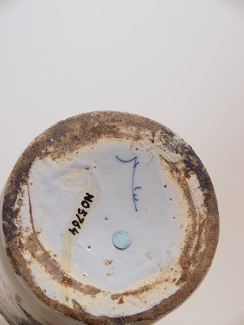 Apothekerspot, cilindrisch van vorm met korte recht opstaande hals. De pot is polychroom gedcoreerd met een leeggelaten cartouche en florale motieven.||Delft||onbekend||Keramiekmuseum Princessehof NO 05764