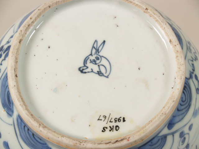 in kobaltblauw op onderkant: een haasje (Nederlands)