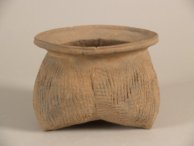 Kookpot met drie poten en decor van vertikale lijnen (Nederlands)