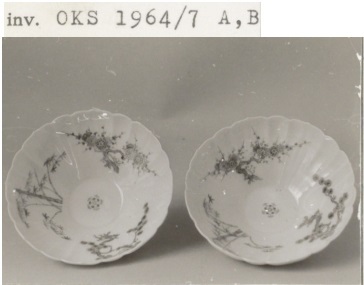 Twee kommetjes met aan de binnenzijde decor van de Drie Vrienden, kakiemon (Nederlands)