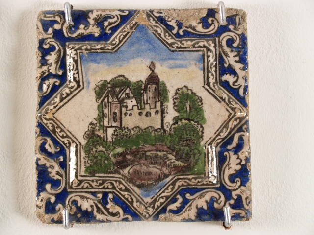 | Nederlands | Tegel met decor van kasteel in landschap |
