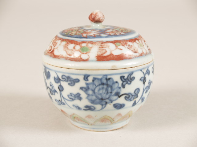 | Nederlands | Pot met deksel en decor van lotusranken |