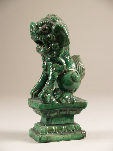 Beeld van boeddhistische leeuw, groen geglazuurd (Q21595)