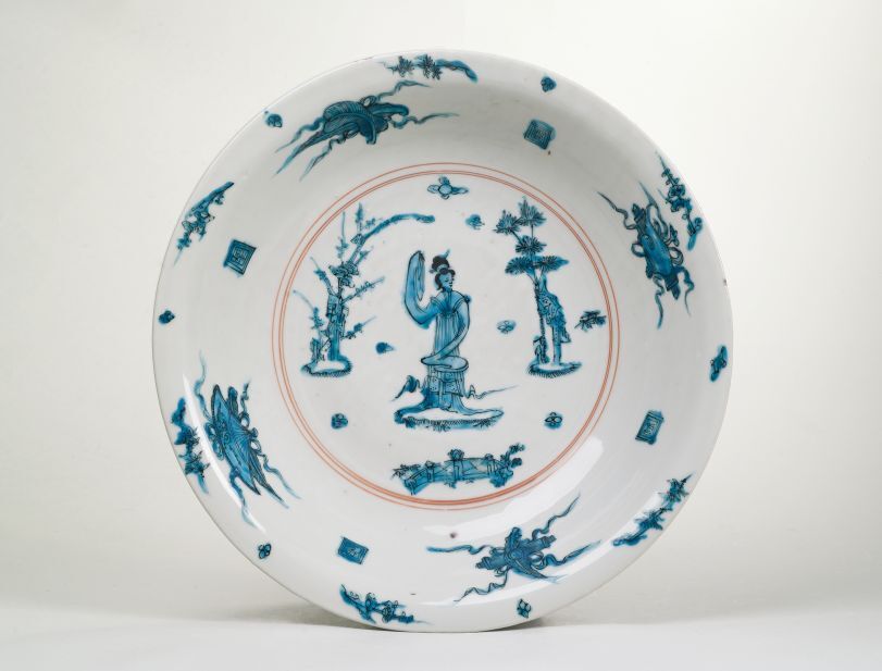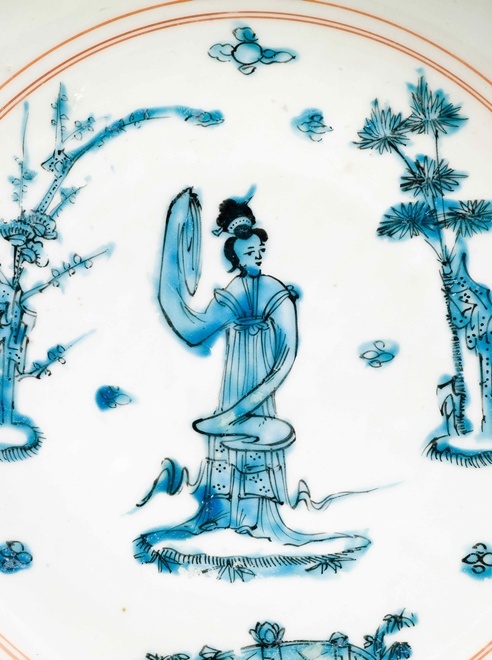 | Nederlands | Schotel met decor van vrouw en symbolen |