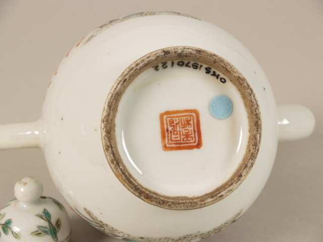 Trekpot met decor van chrysanten, vogel, hert en symbool (Q21653)
