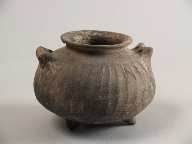 Pot op 3 poten met decor van ingegrifte verticale ribbels, pre-islamitische periode (Nederlands)