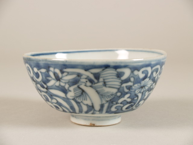Kom met decor van reigers temidden van bladeren (Nederlands)