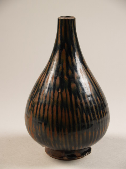 Flesvaas bedekt met bruinzwart gestreept glazuur, temmoku (Q21744)