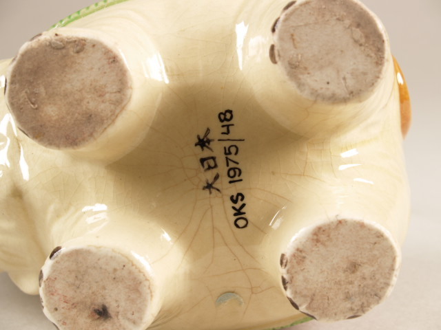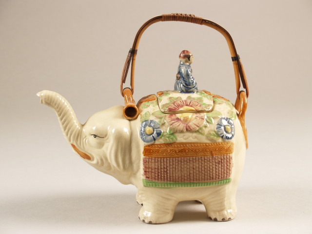 Theepot in vorm van olifant met als dekselknop een man (Nederlands)