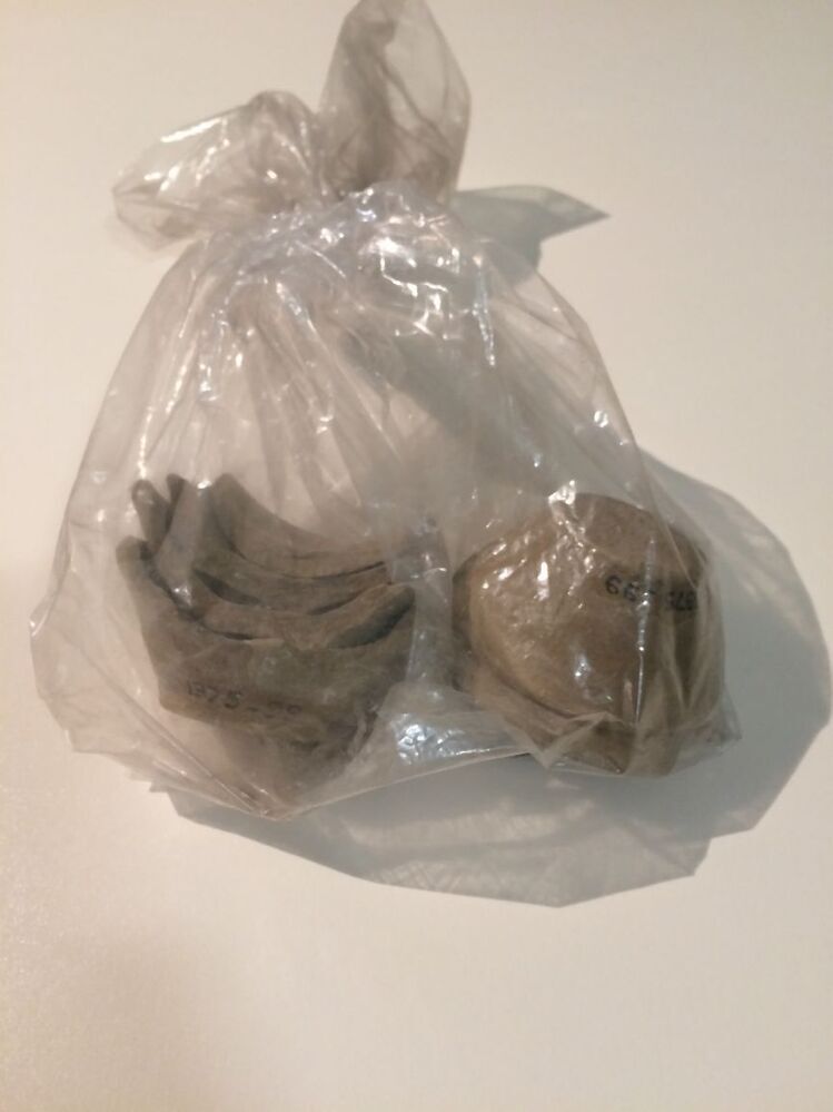Brokjes ongebakken klei van gebroken olielampje. (Nederlands)