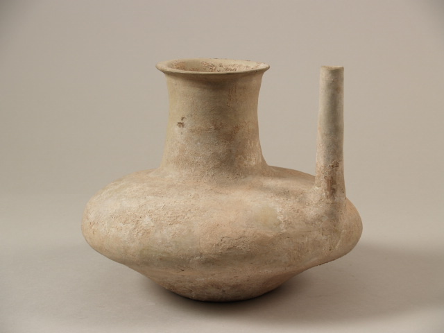 Kruik, ongedecoreerd. Een kruik bestaande uit een brede hals met daarnaast een dunne verticale schenktuit. De kruik is ongedecoreerd.||Huasteca Potosina||Keramiekmuseum Princessehof OKS 1977-055