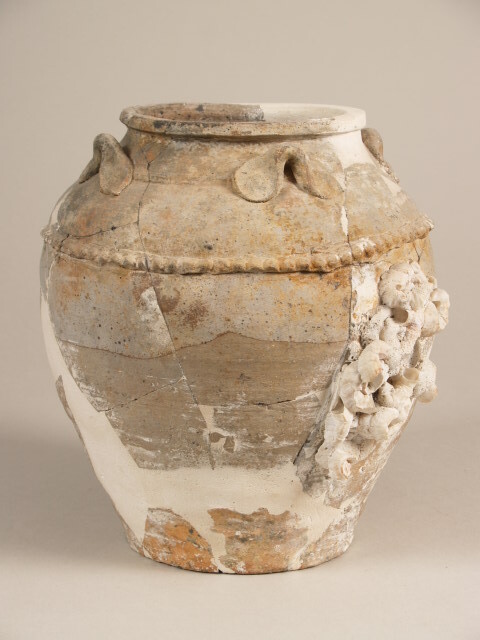 Pot, martavaan, met 4 oren en gedeeltelijk met glazuur (Nederlands)